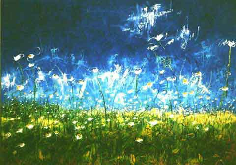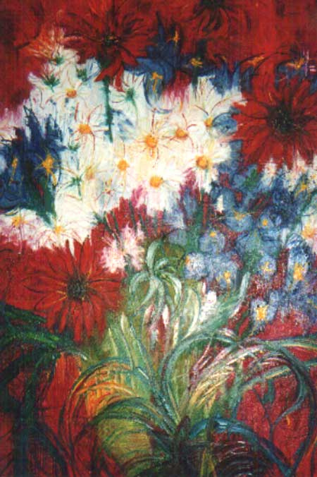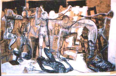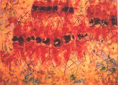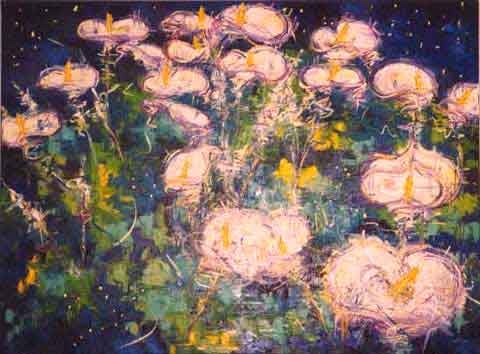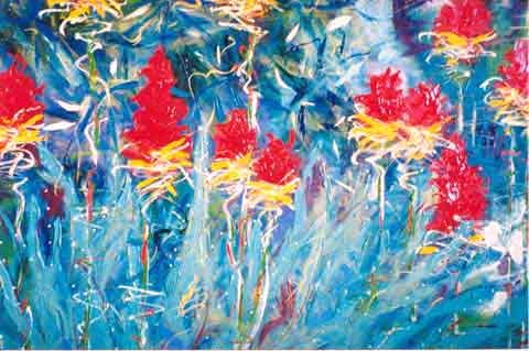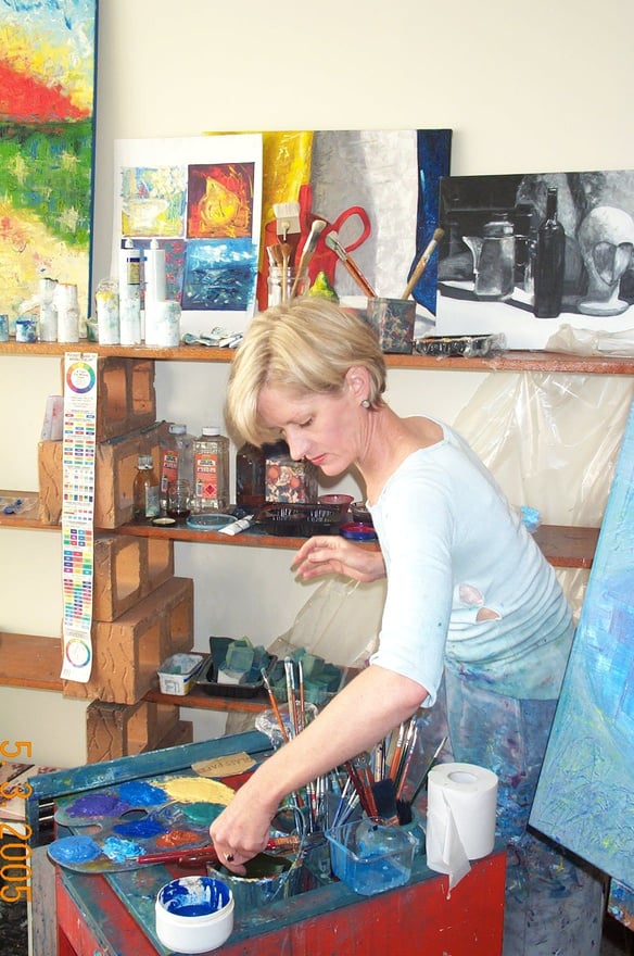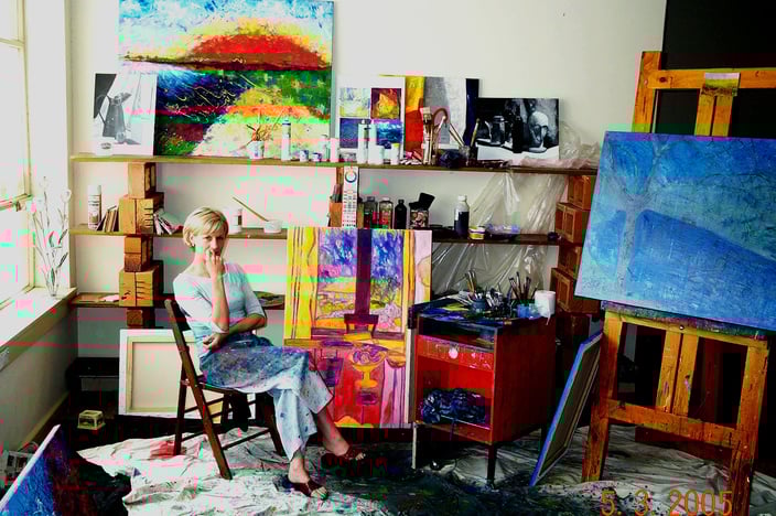 I love to work intuitively and not get too hindered by the constraints of an academic/intellectual approach to making art. For me, painting holds the same exitement and energy as my days in performing and comes from a personal place and life experiences.